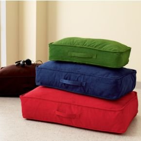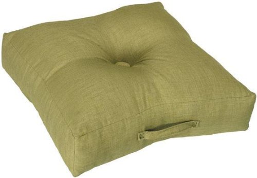 Plush floor pillow offers quick and comfy seating anywhere. Dimensions: 20-Inch Length by 20-Inch Width by 5-Inch High. Button-tufted with generous poly stuffing for extra comfort and longevity. Cushions can stack when not in use to preserve floor space. Made in the USA. Deluxe Microfibre fabric is water and stain resistant. Filled with 100-Percent post-consumer fiberfill (made from recycled plastic bottles). Your purchase directly diverts plastic bottles from landfills! Secure carry-handle for transportation. Decorative corded edges. Certified fabric is manufactured with environmentally friendly processes. 100-Percent Nylon face. Spot Clean.